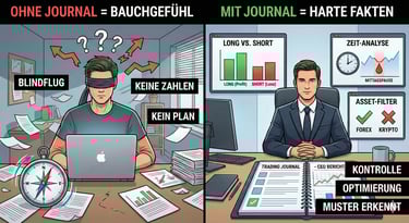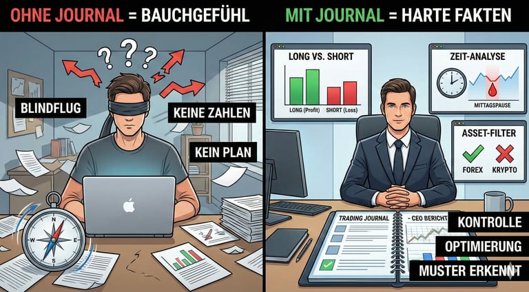 Im Geschäftsleben ist Buchhaltung Pflicht. Kein CEO würde ein Unternehmen führen, ohne die Zahlen zu kennen. Im Trading bist du der CEO deines eigenen Kapitals. Ohne ein Journal handelst du blind.